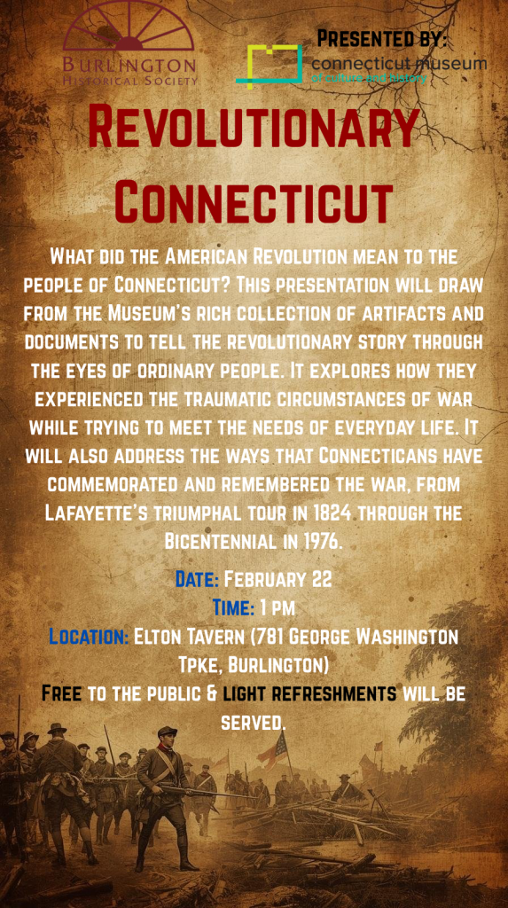 As we kick off the anniversary of our nation’s independence, we welcome you to join us for our featured February program – Revolutionary Connecticut presented by the Connecticut Museum of Culture and History.